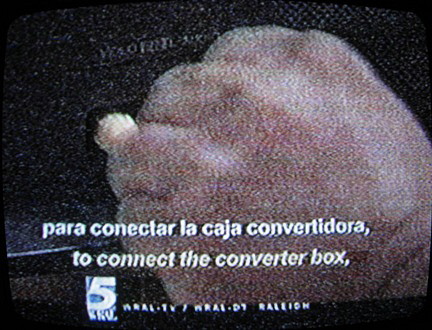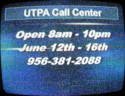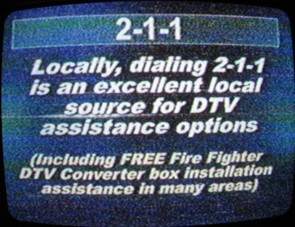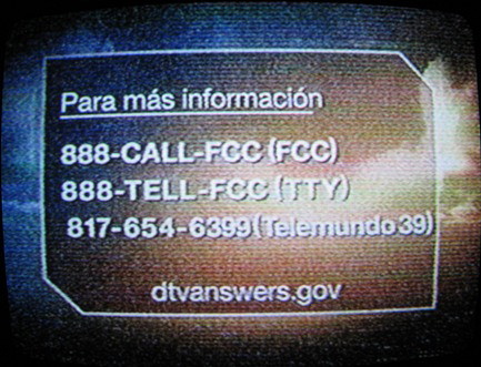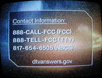 ![]() "1 888 CALL FCC" This is the end of a short NAB DTV Transition message that KGWN-5 ran prior to the promo in the next photograph. |