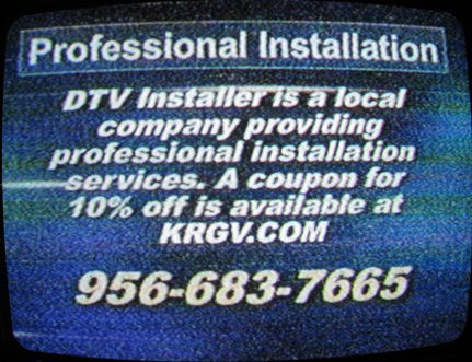 At 499 miles, KRGV-5 was my most-distant Nightlight via tropo. These are pictures from a slide and video presentation that KRGV-5 aired between national DTV Transition programming.
